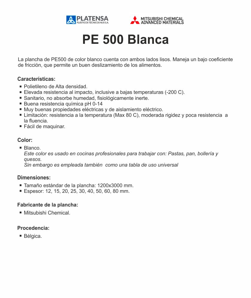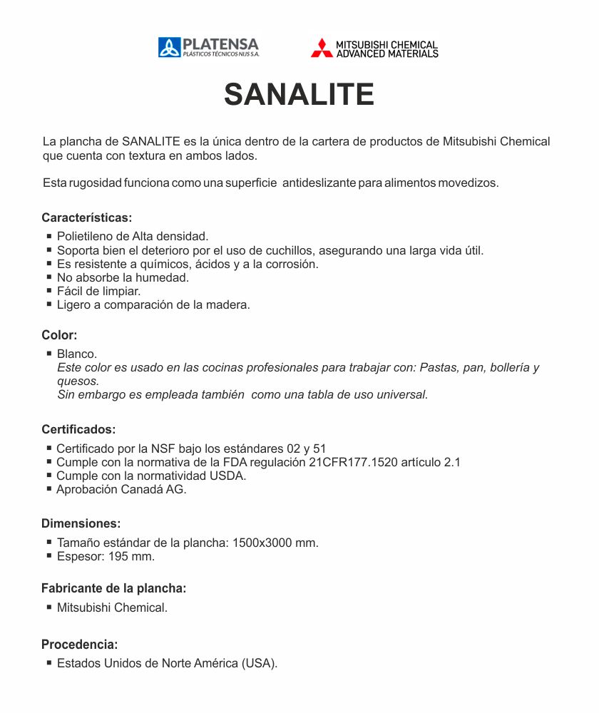 Las tablas con superficie rugosa y lisa de polietileno de alta densidad crean una superficie sanitaria para el trabajo de los alimentos. El polietileno empleado en su fabricación cumple con varias normativas internacionales. Además de contar con la certificación de la NSF. El cliente puede estar seguro que el polietileno cumple con estándares específicos de seguridad, calidad y desempeño.
